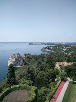 Dopo pranzo ripercorriamo a piedi il Sentiero Rilke e ritorniamo alle bici. Per raggiungere il Castello di Miramare c'è soltanto una possibilità, la SR14, panoramicissima ma funestata da un traffico esuberante.